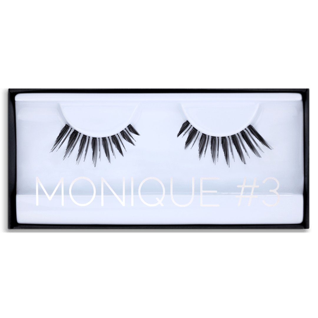 The lightweight design opens up the eyes while subtly lifting and elongating the outer corners, creating a refined feline-inspired shape that looks beautifully realistic. Ideal for both everyday wear and special occasions, Monique #03 blends seamlessly with your natural lashes for a polished, confident finish.