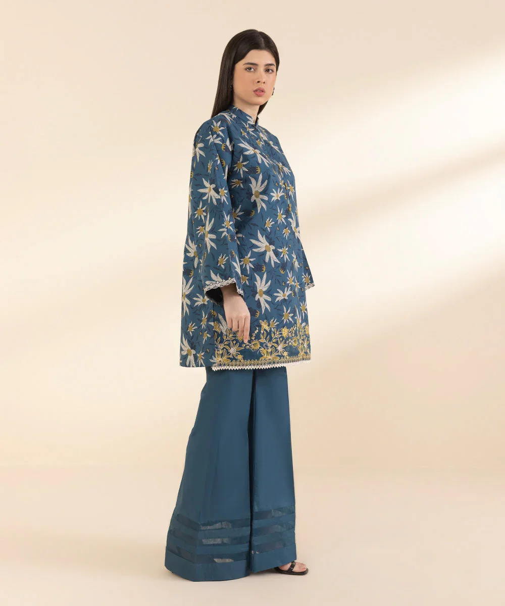 Elevate your everyday style with this elegant Sapphire 2-piece embroidered lawn suit. Featuring a beautifully crafted teal blue lawn shirt adorned with intricate embroidery, paired with comfortable cotton trousers, this outfit offers the perfect blend of sophistication and ease. Ideal for both casual wear and semi-formal occasions, its breathable fabric ensures all-day comfort while keeping your look effortlessly chic.