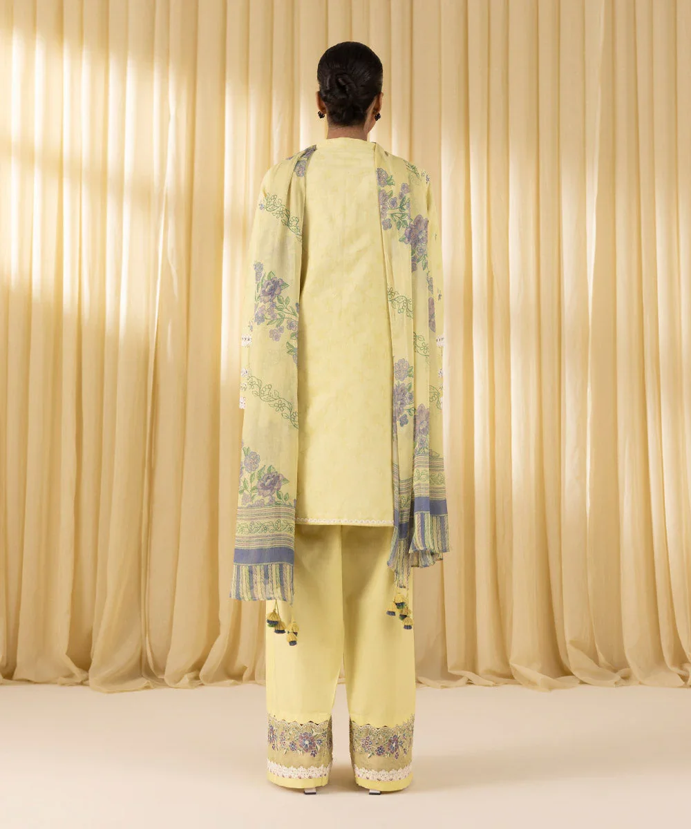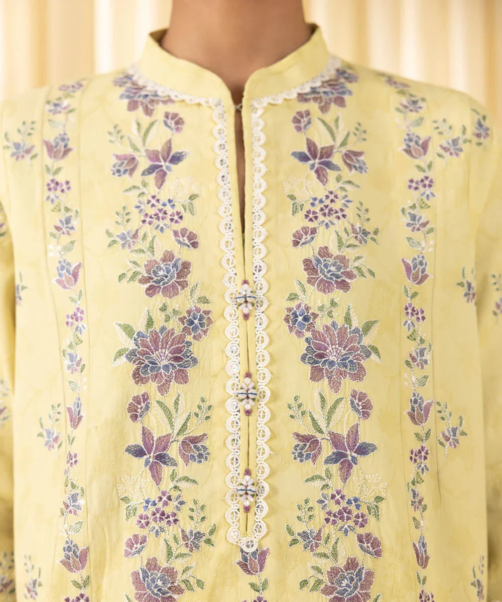 Refresh your wardrobe with this elegant Sapphire 3-piece embroidered suit, designed to bring timeless charm and modern sophistication together. Crafted from premium cotton jacquard, the lime yellow shirt features delicate embroidery that adds a refined and graceful touch.