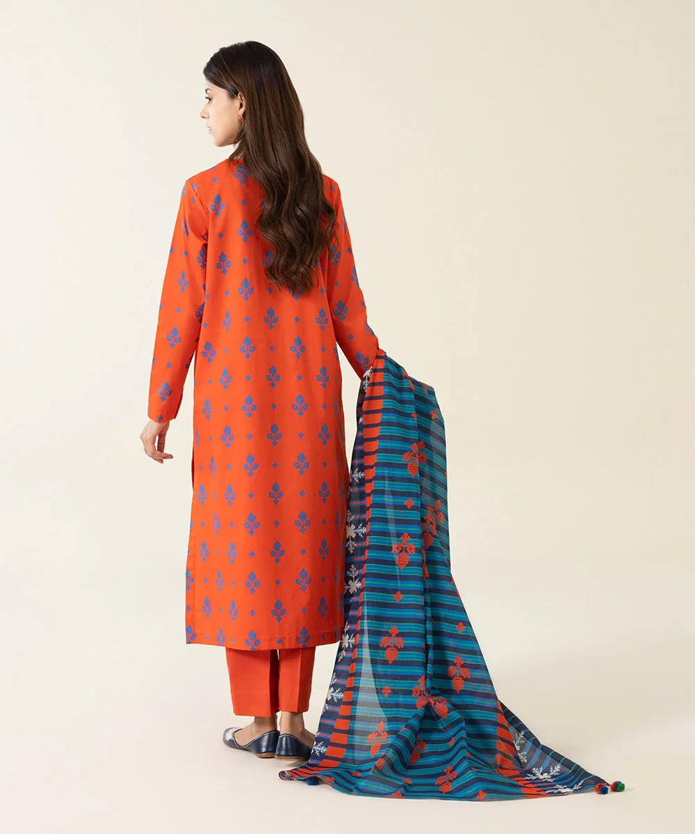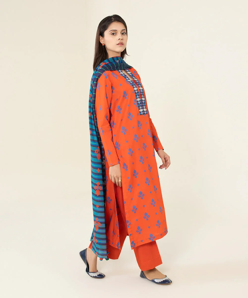 The set includes a beautifully printed lawn shirt, comfortable matching trousers, and a coordinated blended tissue dupatta, designed to provide both elegance and ease. Ideal for festive gatherings, casual outings, or special occasions, this suit allows you to embrace heritage fashion while staying effortlessly chic.