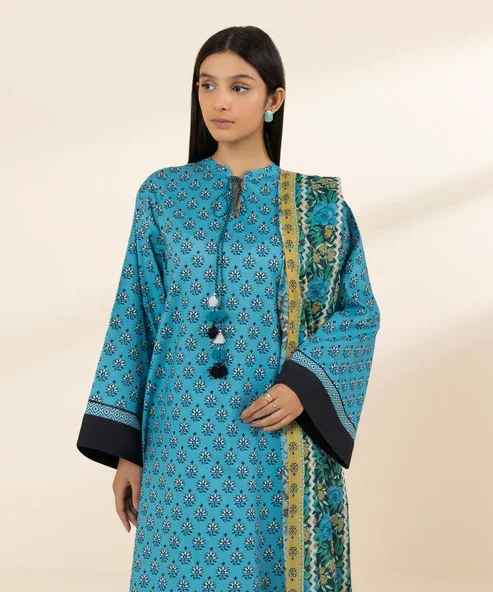 Elevate your wardrobe with the Sapphire 3-Piece Printed Lawn Suit. This stunning ensemble features a teal blue printed lawn shirt, paired with soft cotton trousers and a lightweight voile dupatta. Perfect for casual outings or festive gatherings, it combines comfort, style, and elegance effortlessly. A timeless addition to your collection that ensures you look graceful and chic all day long.