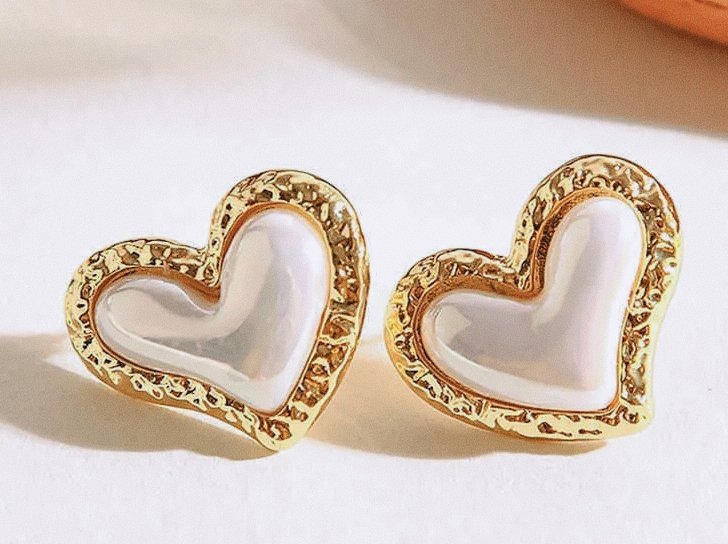 Add a touch of timeless romance to your jewelry collection with these Stainless Steel Heart Shape Pearl Stud Earrings. Designed with a luminous pearl-finish heart centerpiece and framed by a textured gold-tone stainless steel border, these earrings blend elegance with modern durability.